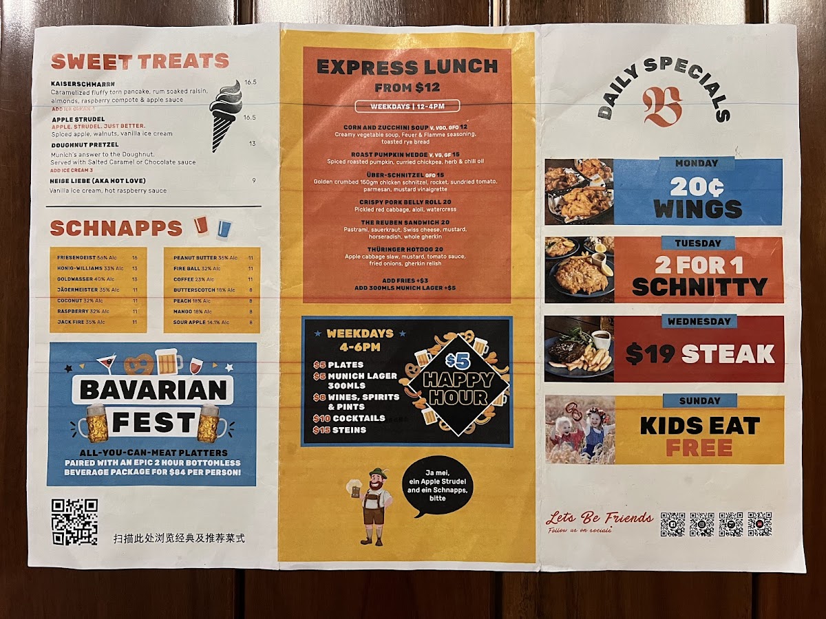The menu shines a spotlight on classic Bavarian dishes, with standout items like the crispy pork knuckle, where the meat effortlessly falls off the bone, and indulgent apple strudel, served warm with a scoop of ice cream—an exquisite finish to any meal. The cinnamon sugar pretzels are also a must-try, characterized by their delightful chewy texture and flavorful dips.